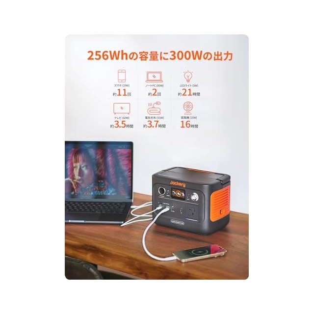 【256Whの容量に300Wの出力】従来モデルから大幅にパワーアップ。スマホやタブレットはもちろん、パソコン、ライト、小型炊飯器、小型車載冷蔵庫、扇風機、電気毛布、プロジェクターなど、ひとり暮らし防災やソロキャンプをサポート。