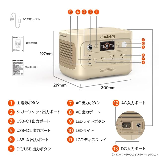Jackery ポータブル電源 600 Plus 632Wh リン酸鉄 長寿命 定格出力800W 瞬間最大1600W コンパクト 60分急速充電 UPS機能 アプリ遠隔操作 純正弦波 AC100V 50Hz/60Hz対応 車中泊 家庭用 蓄電池 停電対策 台風対策 節電対策 防災対策 ジャクリ (サンドゴールド)