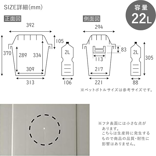 【サイズ】約幅33.8×奥行33×高さ41.7cm 【重量】約1.583kg 【容量】約22L 【素材・材質】PP(ポリプロピレン) 【生産国】日本