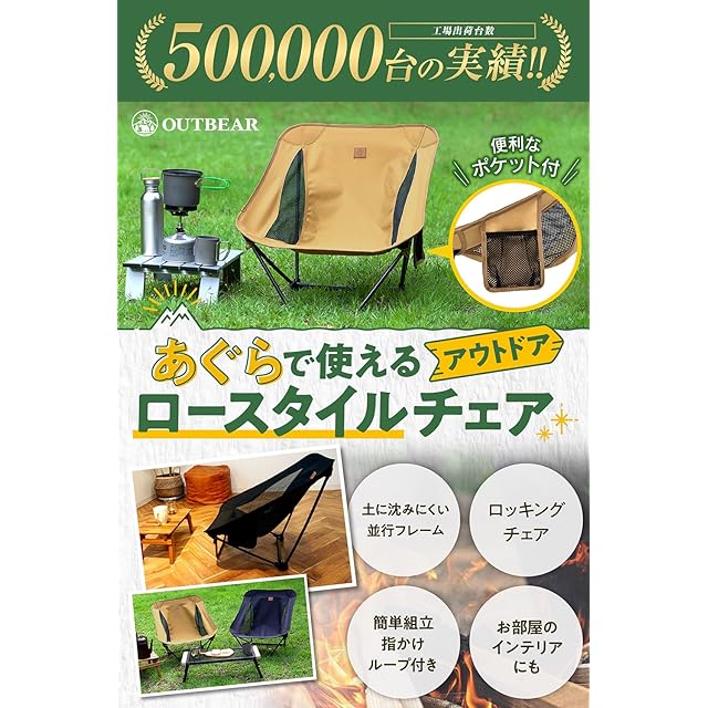 OUTBEAR【あぐらで使える】 アウトドアチェア ローチェア グランドチェア キャンプ あぐらチェア[国内検査機関で耐荷重120kg試験済み] (タン)