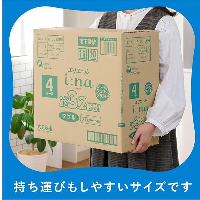 エリエール トイレットペーパー i:na(イーナ) フラワープリント 3.2倍巻き 75m×32ロール(4ロール×8パック) ダブル パルプ100% 華やかなフローラルの香り 【ハーフケース】【EC限定 段ケース入数】