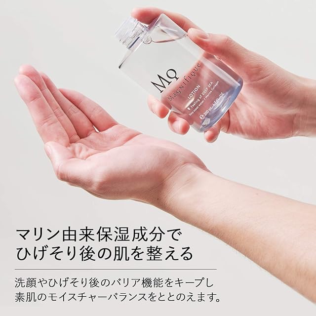商品特徴2】モイスチュアライジングローション(化粧水)::マリン由来保湿成分配合のローションが肌の深部※に浸透し、すこやかな肌にみちびきく。洗顔やひげそり後のバリア機能をキープし、素肌のモイスチャーバランスをととのえる。 *浸透促進成分※1配合