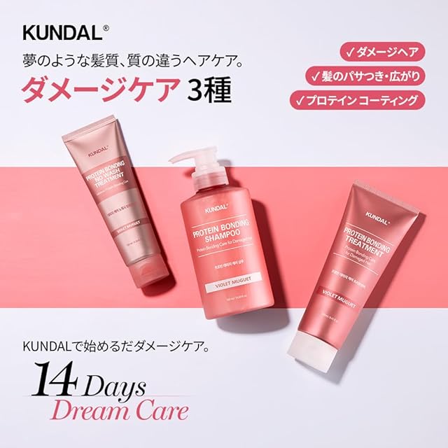 【KUNDAL/クンダル】ダメージケア3個入りセット(シャンプー500ml+トリートメント250ml +ノーウォッシュトリートメント130ml) #レザーアイリス #Leather Iris #フェミニンな香り