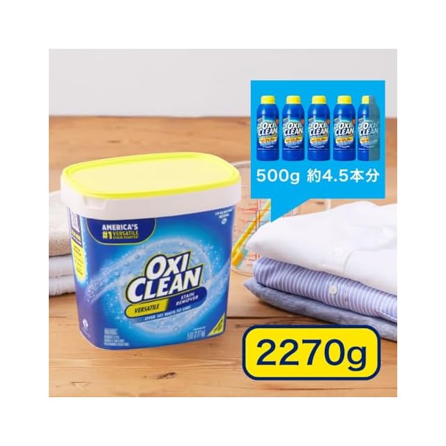 ※パッケージは予告なく変更となる可能性があります。 ※成分表記は出荷時期により異なる場合がありますが、成分内容に変わりはありません。 ※製品によって青い粒の量に差が生じたり、保管環境によっては粉末が固まる事がありますが、漂白等の効果に差はありません。 ※オキシクリーンは粉末の状態でも常に酸素を発生させており、容器の破裂を防ぐため密閉容器ではありません。 万全を期しておりますが不具合などがございましたら、メーカー(株式会社グラフィコ)までお問い合わせください。 【商品詳細】[内容量]2270g:[原産国]アメリカ ▼ 注意点:ご使用の前に、商品ラベルにございます「ご使用上の注意」を必ずお読み下さい。アメリカ製の当製品にはいっている青い粒は、成分の一部に色付けしたものです。