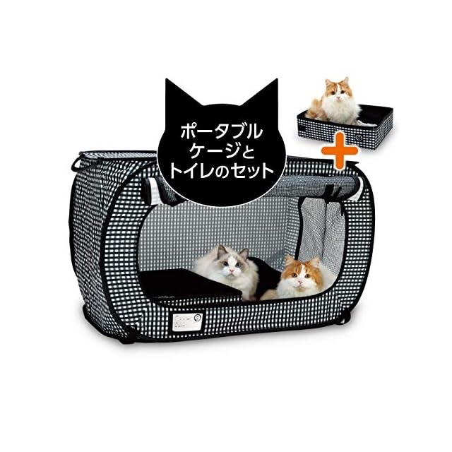 猫壱(necoichi) ポータブルケージ トイレ セット 折り畳み可能 防災 移動用 黒