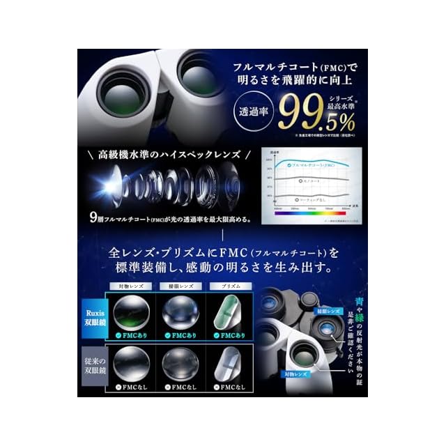 ✅【 最先端光学レンズ搭載/フルマルチコート 】世界的な最大手メーカーの光学ガラスをレンズ原料として採用し、シリーズ最高水準の透光率99.5%以上を達成。ナノ単位で研磨した9層ものフルマルチコーティングにより、視野の「明るさ」を飛躍的に高めました。 ✅【 高級BaK4プリズム 】レンズ性能を極限まで引き出すため、高級BaK4プリズムを標準装備。ポロプリズム方式により隅々までシャープで高鮮明な像を提供します。