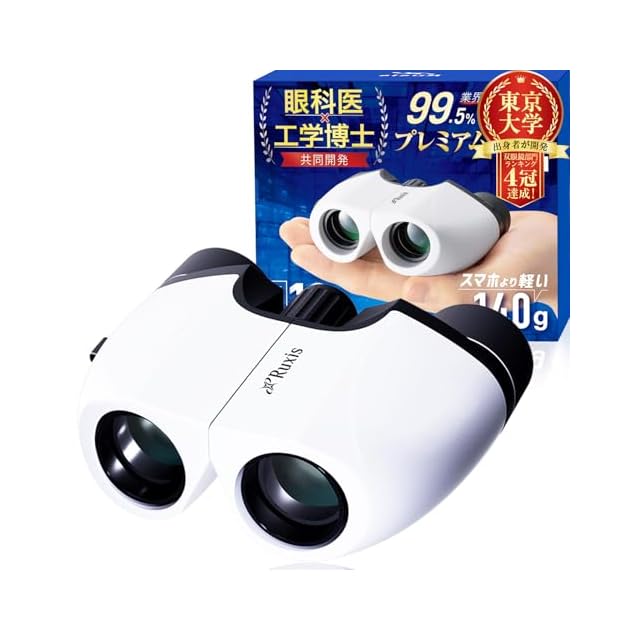 【眼科医x東大卒の工学博士が開発】 双眼鏡 ライブ用 10倍 オペラグラス コンサート用 スポーツ観戦用 超軽量 140g 【日本ブランド】 Ruxis (ホワイト)