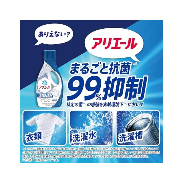 アリエール 洗濯洗剤 液体 超抗菌プレミアム 漂白剤級洗浄 清潔でさわやかな香り 詰め替え 625gx6袋 [ケース品]