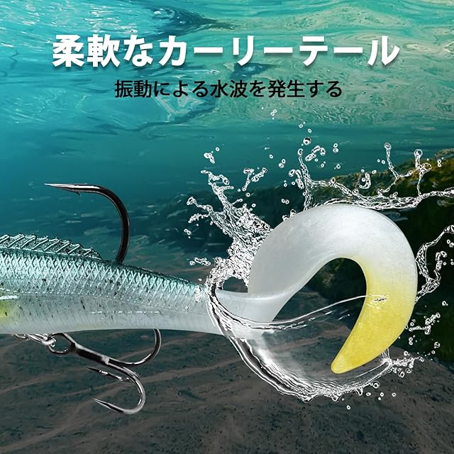 【日本現地のデザイン・素材を採用】ルアーは日本で専門的に設計され、高品質の日本製PVC素材を使用しています。 ルアーの表面コーティングと光の屈折率はチューニングされ、厳格にテストされ、ルアーがよりリアルで水中で魅力的になり、効果的にキャッチ率を高めます。