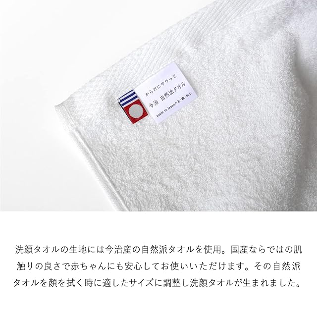 【今治自然派洗顔タオル】 洗顔のあと顔を拭くのにちょうどいい大きさで、非常に細い糸を使用したお肌に優しい「洗顔タオル」。 お肌がいつも清潔で洗顔が心地よくなる顔拭き専用のタオルです。
