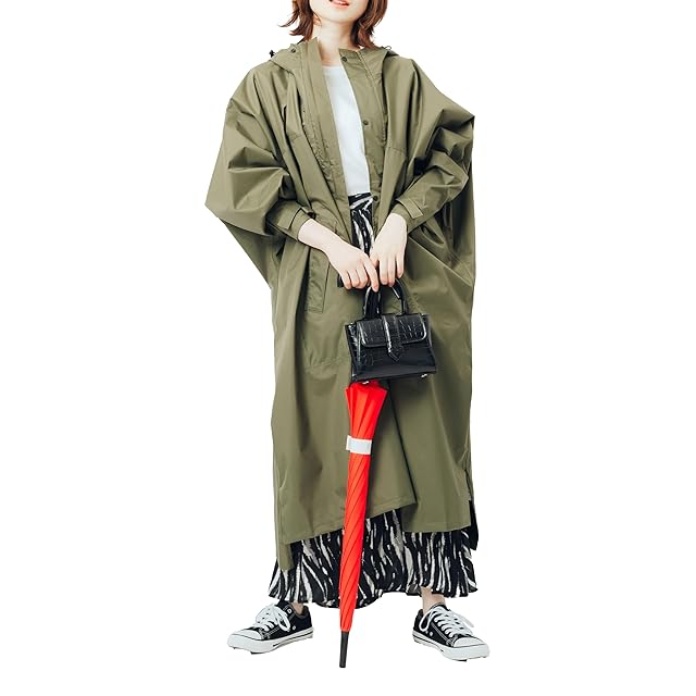 [ピラルク] レインポンチョ サイクルモード ハイポンチョ 撥水 防水 オリーブ Free Size