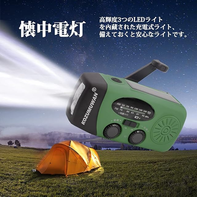 【FM/AM/防災ラジオ】台風、津波、地震、停電など災害を防ぐための緊急対策ラジオです。このラジオライトは、停電、電気通信の不安定または中断された場合に、外界からの災害情報を収集可能。緊急時、救援者は迅速に位置を特定する可能。