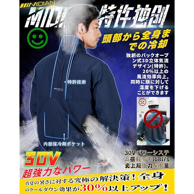 【プロの夏の屋外の紫外線を防ぐ作業服】私達は綿の通気性の外層を採用して、そして内側に紫外線を防ぐ断熱チタンのコーティングを増加して、業界最強の材料を作ります!日焼け防止速乾、通気性と断熱性を備え、98%の紫外線保護能力を提供します。 MIDIANオリジナルの背面開放式3D立体風道設計(特許設計)を採用して、空気循環効率を30%以上向上させ、同時に頭部に風を送り、温度を下げます。 360度涼しく感じられます! 高温環境で長時間作業する場合でも、熱中症のリスクを低減することができます!