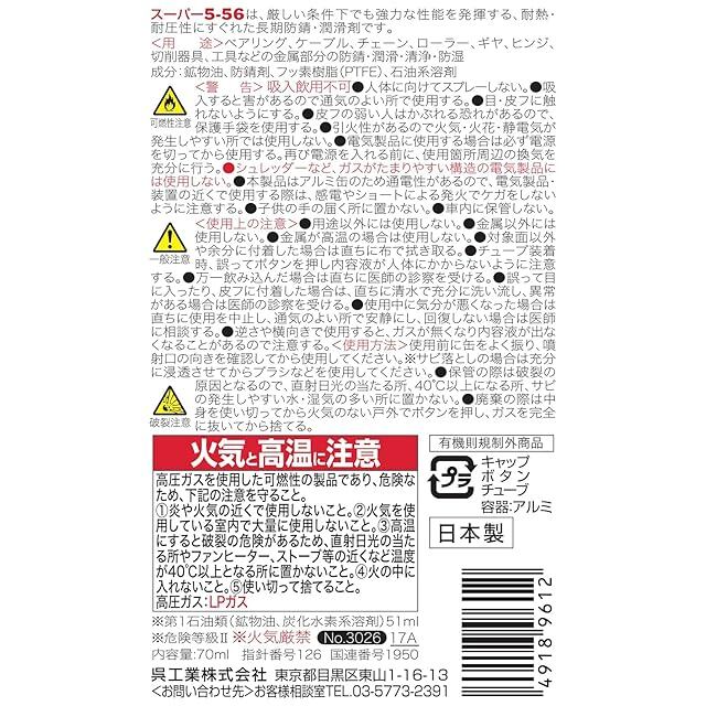 商品名:KURE(呉工業) スーパー5-56 70ml 長期防錆・潤滑剤 3026