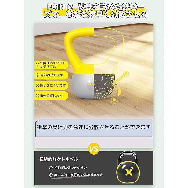 PROIRON ケトルベル 柔らかい 8kg kettlebell 鉄ビーズ砂鉄 充填