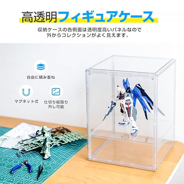 仕切り板で収納力アップ: 高さは三段階に調節可能なので、複数のコレクションを並べることができます。仕切りは外せば大きめのフィギュアも飾れます。