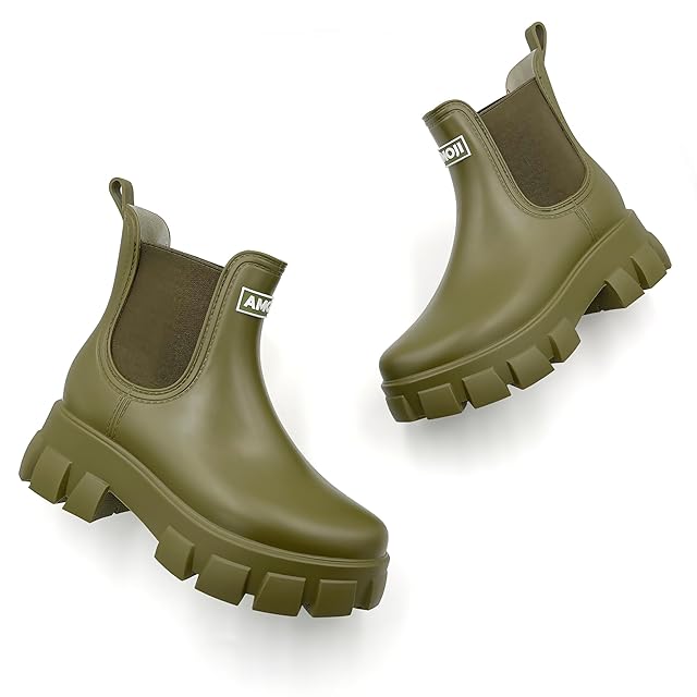 [アモジ] レインブーツ メンズ レインシューズ レディース ショート ながぐつ めんず あまぐつ れでぃーす あま靴 チェルシーブーツ サイドゴア スーツ オフィス 雨靴 防水 靴 通勤 おしゃれ ビジネス 長靴 完全防水 厚底 大きいサイズ 雨の日 CB917 グリーン 28.0cm