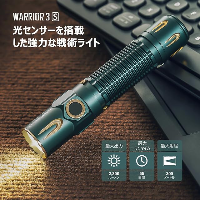 [2300ルーメン高輝度/300メートル射程] Warrior 3Sは高性能なLEDを搭載し、2300ルーメンまでの高輝度を備え、300メートルのホワイトビームを出力します。 高視認性の光束は防災、作業、旅行、捜索などを対応できます