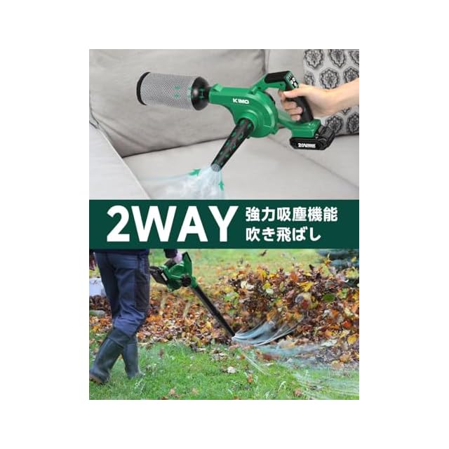 【100m/sを超える最強暴風】KIMO ブロワー 強力 洗車 ブロアー 充電式 エアダスター エアーブロー 延長チューブ付き 2.0Ahバッテリ一2個搭載 コードレスブロワー 風量調整可能 吹き飛ばしと集塵1台2役 空気入れ/空気吸引機能 落ち葉 庭掃除 エアーダスター 電動ブロアー 集塵ブロワー ぶろわー バキューム 掃除機 集塵機 小型 ノズル3個 ダストバッグ1個 QM-6304