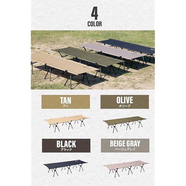 ✅【日本国内の耐荷重検査合格済み製品】コット全体で支える安心の耐荷重スペック”150kg”アルミ素材の中でも特に強度の高い”A7075(超々ジュラルミン)”を採用することにより 小さな子どもから大人まで安心して御使用頂けるスペックに仕上がりました。✅【ハイ・ローどちらでも使用可能】付属のレッグポールを抜き差しすることで、コットをハイスタイル・ロースタイルの 2つの高さに調節することが可能です。お好みの高さ、テントの大きさに合わせたスタイルでお楽しみください
