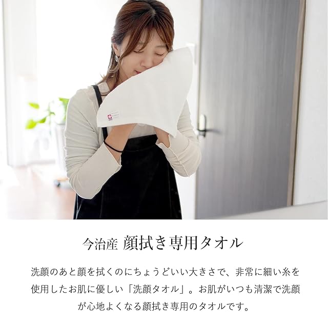 【薄くてもしっかり吸水】 厚みを抑えた洗顔タオルは今治の品質を保ちつつ、洗顔後の水分をしっかり吸水します。 洗面台に置いていても嵩張らずスッキリ。毎日の生活を共に過ごせる快適な今治タオルです。