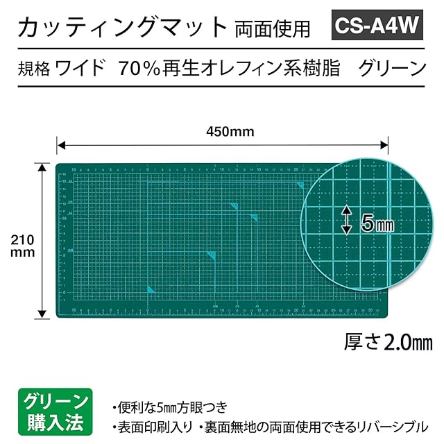 表面印刷(5mm方眼※、規格サイズガイド線)入り、裏面無地の両面使用できるリバーシブルタイプです。※5mmの寸法表示は目安です。