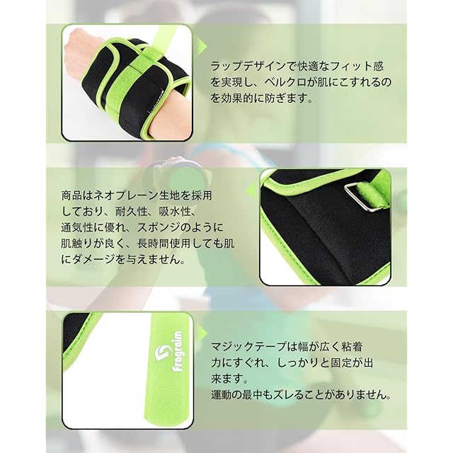Fragraim アンクルウェイト 5段階調節 2個組最小0.4kg-最大2kg 筋トレウェイト 重り 手首 足首 パワーアンクル 重さ調整可能 片足1kg ソフト 速乾 通気 ウォーキング ジョギング 体幹トレーニング エクササイズ 男女兼用 初心者 - グリーンです