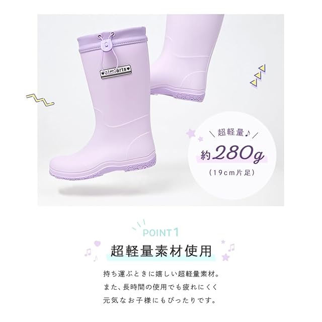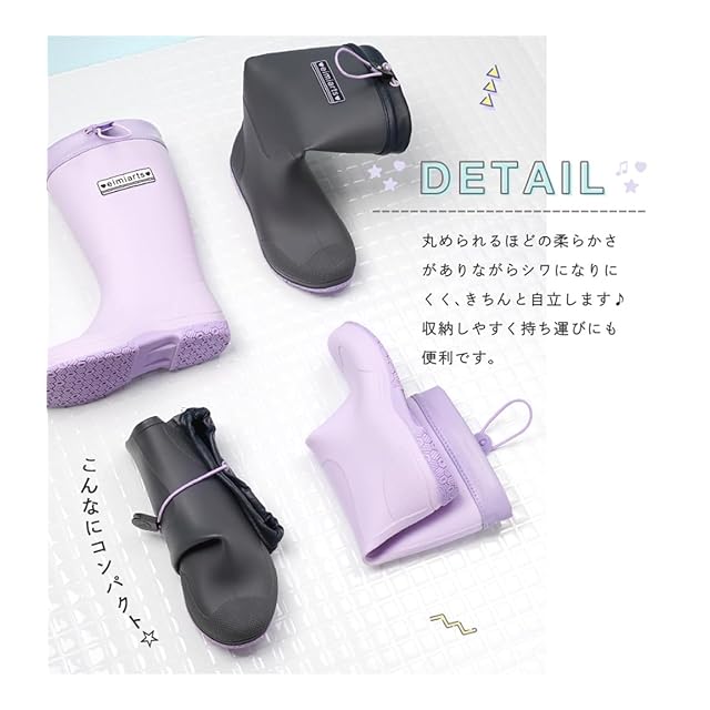 [アリサナ] 折りたたみ レインブーツ キッズ 女の子 ブラック/ラベンダー 19cm