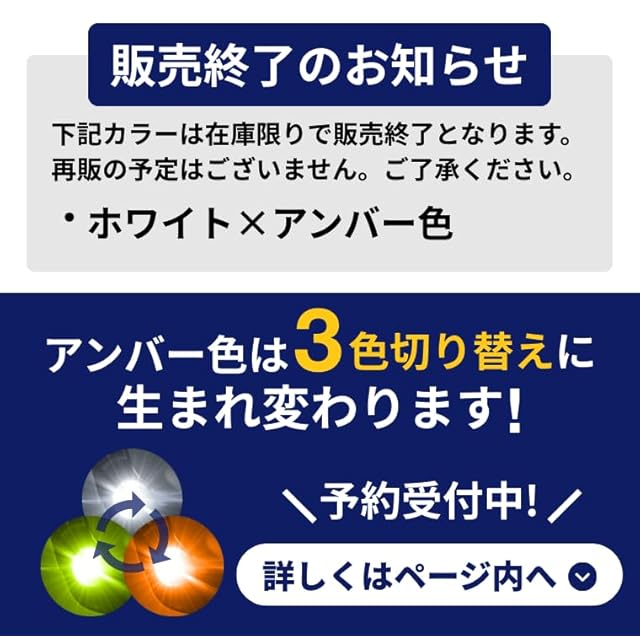【注意事項】 輸入車、24V車は非対応 / 本商品ページではカラーイメージのため、本ページ以外のバルブ形状の車両写真も使用しています。ご購入前に必ず、バルブ寸法と現車での取り付けスペースの確認をお願いします。 / ■取付について / ・防水ゴムとの相性などでバルブが回りにくい場合があります。無理に固定すると破損の恐れがあるため、 付属の台座固定用工具をご使用ください。 (PSX26Wは除く) / ・ライト交換後はご購入カラーに合わせて光軸調整してください。 ホワイト×イエロー、ホワイト×ライムイエロー、ホワイト×フロスティブルー、ホワイト×アンバーはホワイト イエロー×ライムイエロー、イエロー×フロスティブルーはイエロー / ■車検について / フロスティブルーとアンバーは車検非対応カラーです。ライムイエローは車検基準を満たす黄色ですが、検査官の判断により不適合となる場合がございます。検査時はホワイト or イエローに切り替えてください。 ※メモリー機能付きのため、車検を受ける前にホワイト、またはイエローで点灯するかご確認ください。
