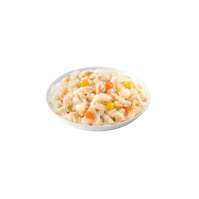原材料:肉類(鶏肉、ささみ)、野菜類(にんじん、かぼちゃ)、小麦、ミネラル類(Cl、I、K、Na)、増粘多糖類、ポリリン酸Na