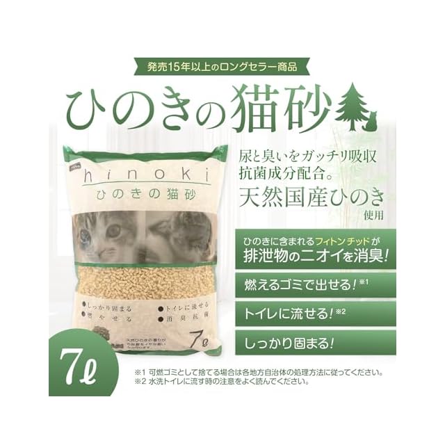 ペットプロ 猫砂 ひのきの猫砂 固まる 消臭 抗菌 トイレに流せる 木製 7L 猫トイレ トイレ砂 ネコの砂