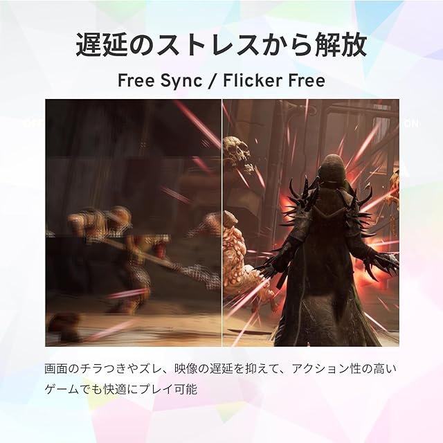 [機能] AMD FreeSync / Flicker Free / VESAマウント(75mm) / ブルーライトカット / Overdrive / Black Equalizer / スピーカー内蔵(3W ×2)