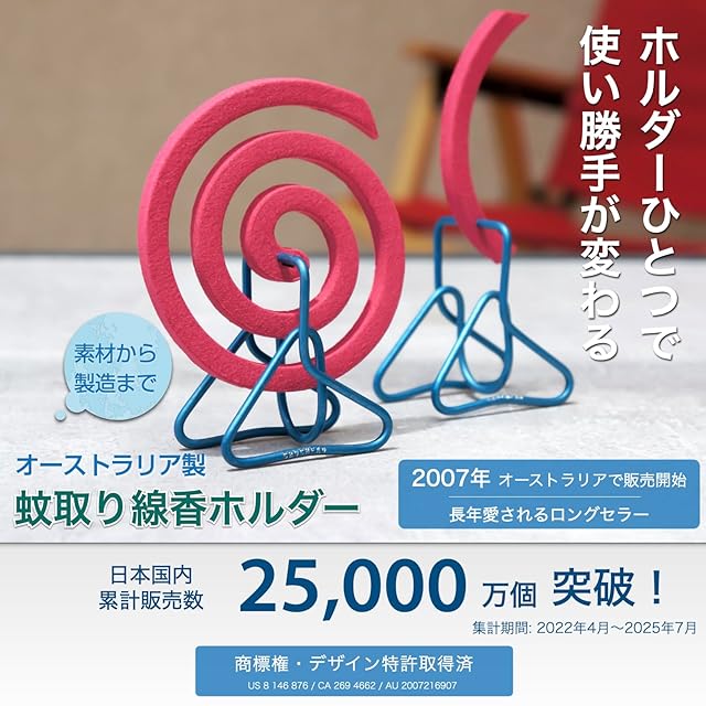2007年にオーストラリアで誕生。試作を重ね完成した、蚊取り線香を便利に使うための「心地よい」デザイン。オーストラリアで年間5万個販売の人気商品です。※デザイン特許取得済
