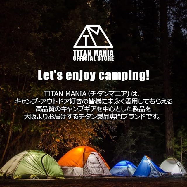 TITAN MANIA(チタンマニア)は、キャンプ・アウトドア好きの皆様に末永く愛用してもらえる高品質のキャンプギアを中心とした製品を大阪よりお届けするチタン製品専門ブランドです。