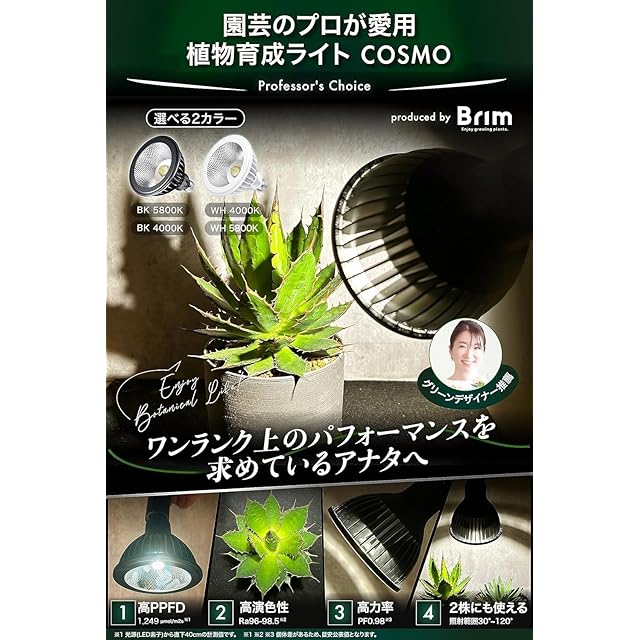 【グリーンアドバイザー推薦】BRIM(ブリム) COSMO 植物育成ライト LED フルスペクトル 高PPFD 高力率 高演色性 植物用LEDライト 省エネ設計 長寿命 E26口金 反射板&集光レンズ付き (BK (22W)暖色系 (4000K))