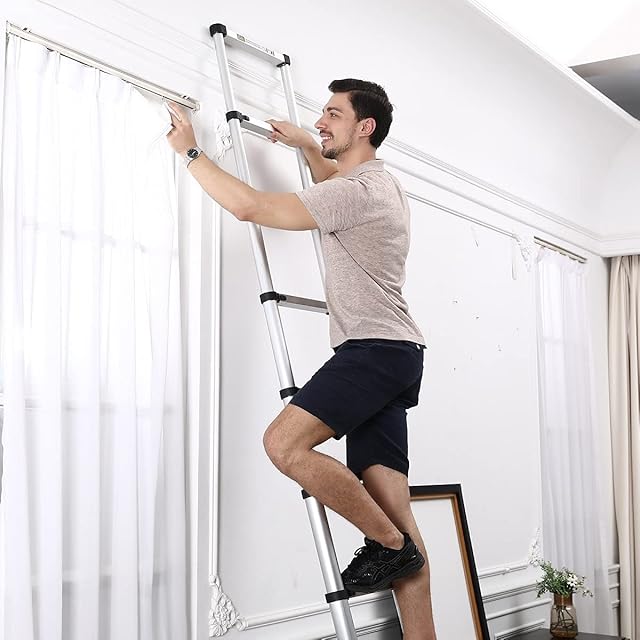 【揺れ防止、滑り防止】アルミ管を重ねて硬く揺れない。また、つま先は凸凹構造と円錐形滑り止め設計で、各層に独立したロックがあり、はしごの安定性が大幅に向上しました。