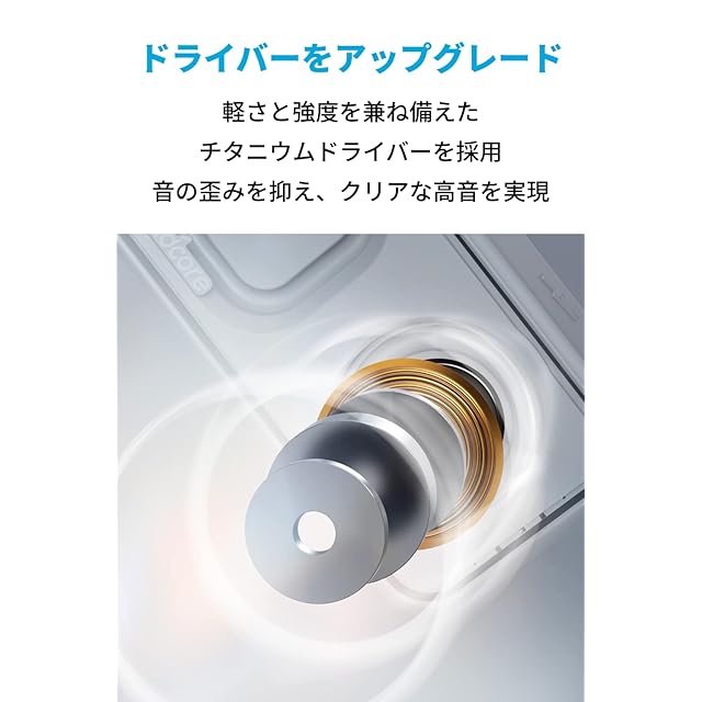 チタニウムドライバー採⽤:軽さと強度を兼ね備えたチタニウムドライバーを採用。音の歪みを最小限に抑え、曲の細部まで忠実に再現します。