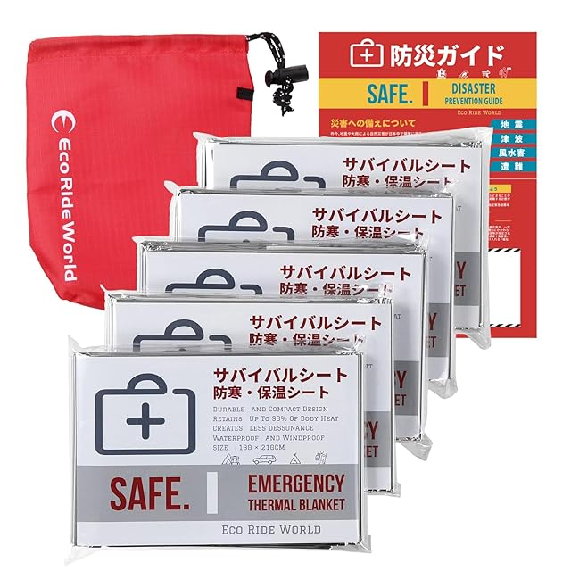 Eco Ride World アルミシート 防災ブランケット エマージェンシーシート サバイバルシート 防災 備蓄 保温 キャンプ 防寒 (5) sb-061