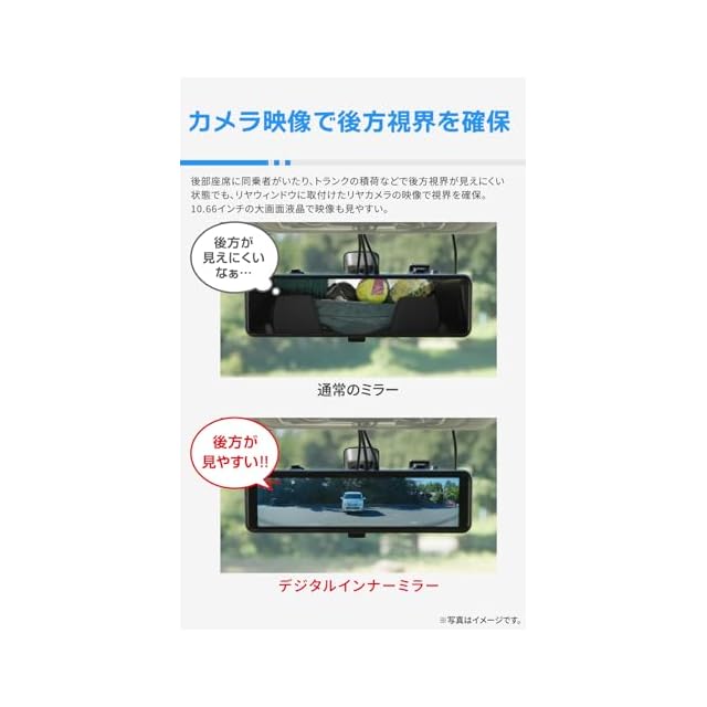 リヤカメラの映像をミラー全面に表示!「デジタルインナーミラー機能搭載前後2カメラ高画質ドライブレコーダーZDR048」