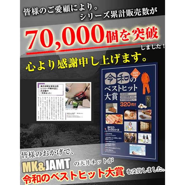 【MK&JAMT R7年改良モデル】車 天井ネット ルーフネット 車中泊 Lサイズ(90×65cm) ルーフボックス カーゴネット ラゲッジネット 大型サイズミニバン 日本語取説 書付