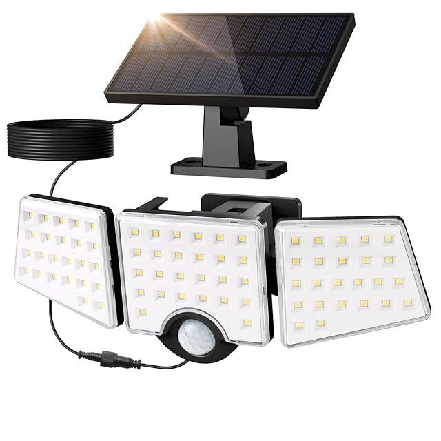 Lepro ソーラーライト 人感センサーライト 防犯ライト ガーデンライト 3灯式 屋内・屋外使用可 夜間自動点灯 昼間自動充電 人が離れたら自動消灯 4.8Mケーブル 1,000ルーメン 超高輝度 角度調整 120°感知角度 270°発光範囲 IP65防水 省エネ 壁掛け式 電源不要 駐車場/玄関/軒/庭/ガレージ 防災・停電対策 最新一体・分離型 単品 ブラック