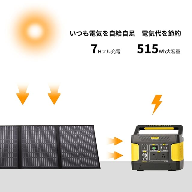 【大容量 515Wh/160938mAh】515Whの電力容量を持ち、他の用バッテリーよりも同じ電子機器を効果的に長く使用することができます。フル充電後、携帯電話、ノートPC、電気炊飯器、車載用冷蔵庫、ジューサー、ドローンなどを充電し、自宅/旅行/キャンプ/RVに使用することができます。多数の家電やデジタル製品が利用可能です。ご家庭の防災備品にも最適です。