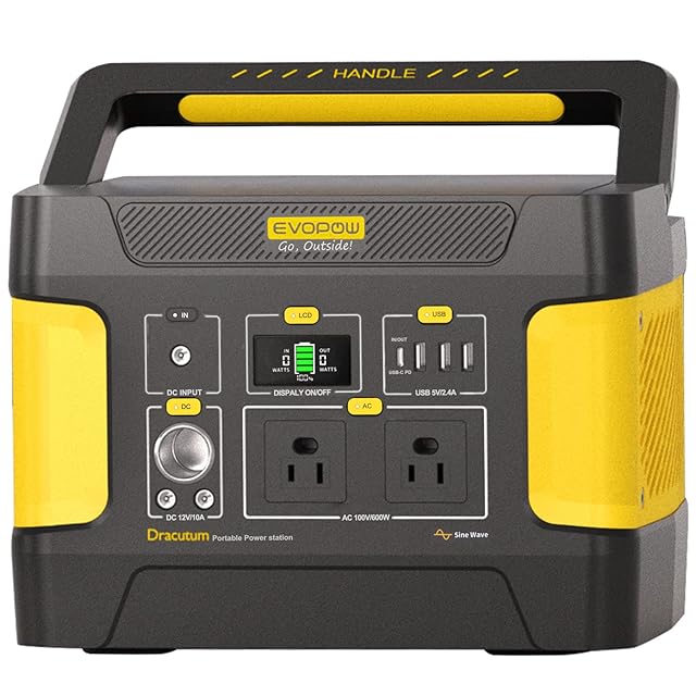 Evopow ポータブル電源 リン酸鉄 大容量 515Wh/160938mAh 出力600W (瞬間最大1200W) AC/DC/USB/Type-C 四つの充電方法 AC出力(2ポート) 100V LEDライト付き MPPT制御方式 純正弦波 家庭用 アウトドア用 ソーラー充電 地震/台風/防災/停電/緊急/非常用 ポータブルバッテリー PSE認証済