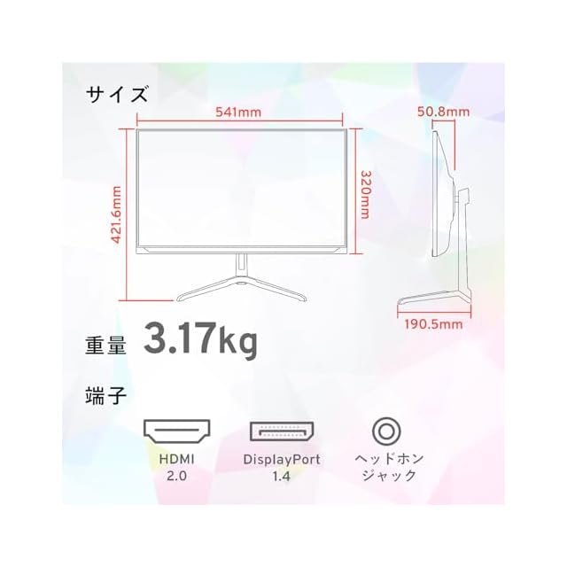 [機能] AMD FreeSync Premium / G-SYNC compatible / Flicker Free / VESAマウント(75mm) / ブルーライトカット / Overdrive / Black Equalizer / スピーカー内蔵(3W ×2)