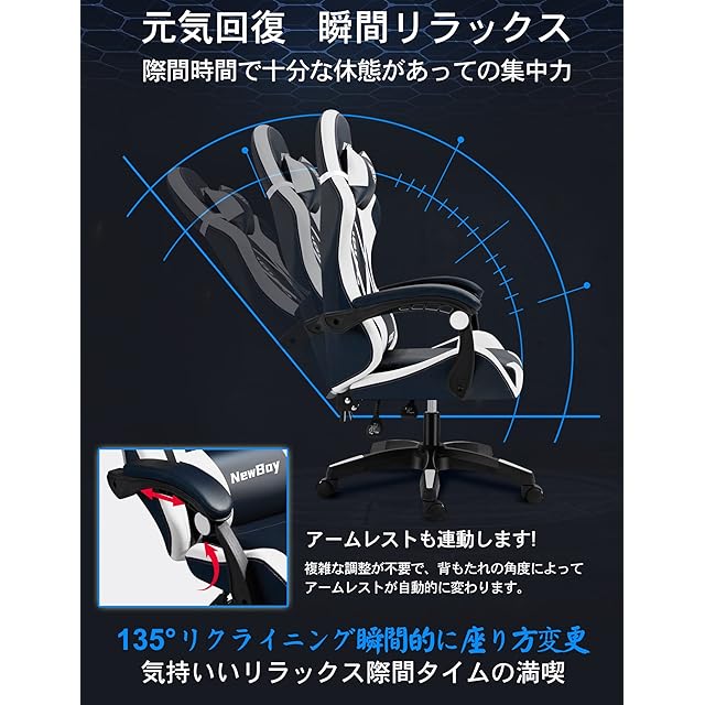 NewBoy ゲーミングチェア gaming chair オフィスチェア オフィス ゲーム用 リクライニング デスク/パソコンチェア 疲れない 椅子 テレワーク (黒と白)