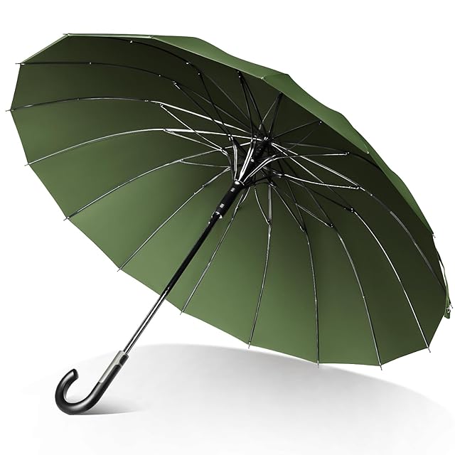 商品名:長傘 【大きいサイズ 頑丈な16本骨】 傘 メンズ 直径115cm 高強度グラスファイバー 丈夫 雨傘 超撥水 耐強風 ワンタッチ ジャンプ傘 埋め込みボタン 軽量 メンズ レディース 男女兼用 大判 紳士傘 晴雨兼用傘 収納ポーチ付き 父の日プレゼント (グリーン)