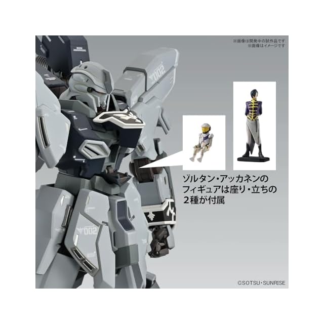 RX-0シリーズへと連なるフル・サイコフレームMSの「原石(スタイン)」となったMS。ナラティブバージョンのデザインに更新されVer.Kaで登場。 『袖付き』の所以であるジオンの紋章を象ったエングレービングはパーツ分割で色分けを再現。 ビーム・アックスは連結して長大なビーム・ナギナタとして装備でき、シールドに装着したままビームパーツを展開することも可能。