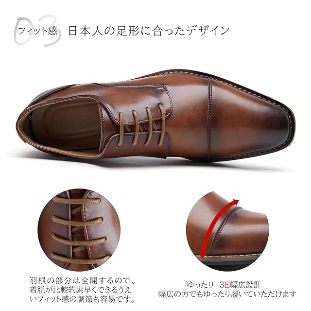 [フォクスセンス] ビジネスシューズ 革靴 メンズ ドレスシューズ ストレートチップ 紳士靴 外羽根 軽量 防水 高級レザー フォーマル ブラウン 24.5CM TN92-02