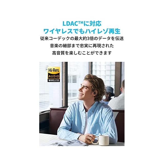 ワイヤレス接続でもハイレゾ再生:高音質コーデックLDACに対応し、通常のコーデックと比較して最大約3倍の情報量を伝送可能です。また、ワイヤレス接続でもハイレゾ音源の再生が可能です。