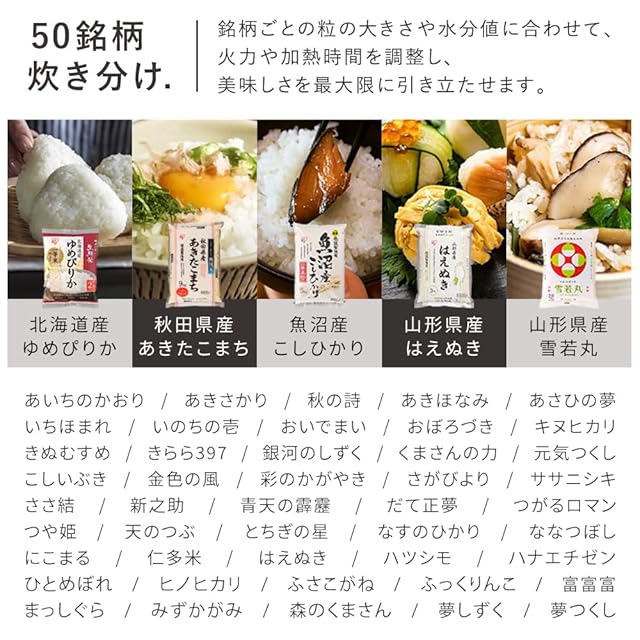 麦飯、玄米、雑穀米を炊くことが可能。炊込みごはん、おかゆもつくることができます。